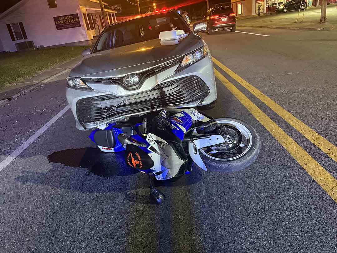 The two women, one on a motorcycle and another in a 2019 Toyota Camry, reported stolen out of Covington, were reportedly friends and traveling together from Morehead to Hindman, when the vehicle struck the motorcycle in the rearend, coming to rest partially on top of the motorcycle.