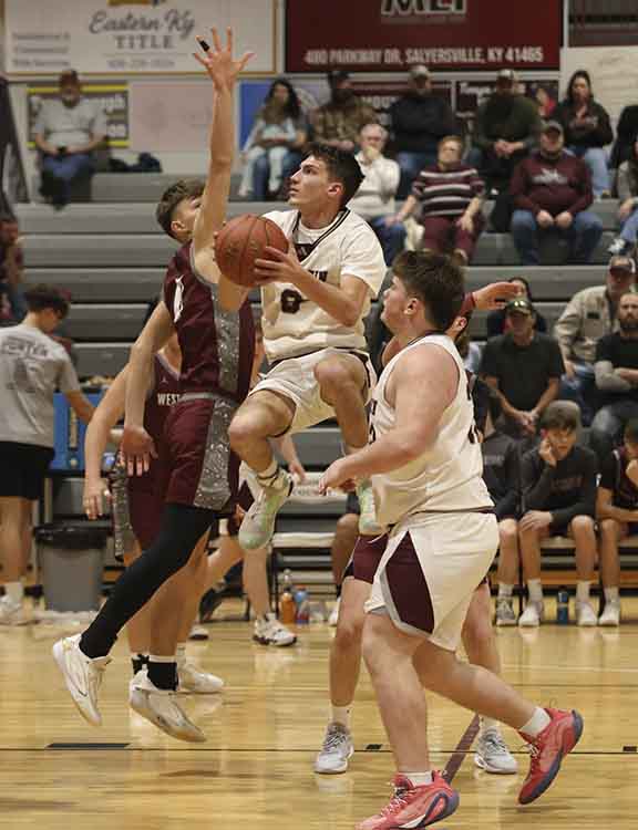 Magoffin County’s Walker Russell went up for a shot during a game versus West Carter on Friday, Feb. 20. Photo || Jim Arnett